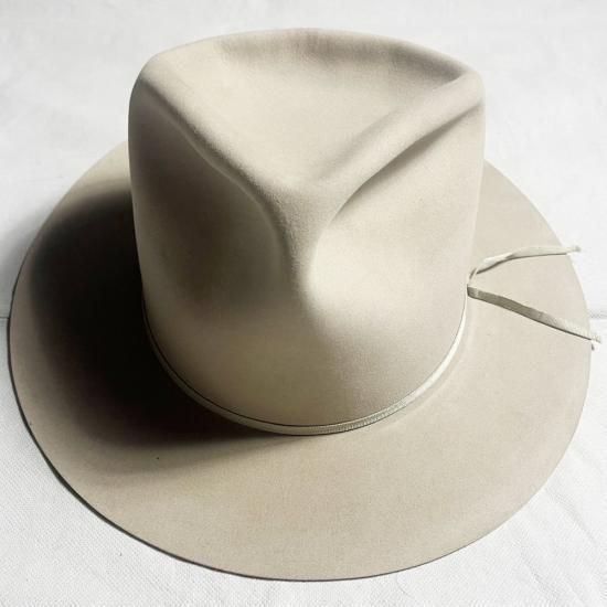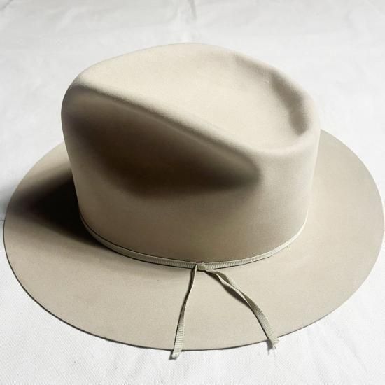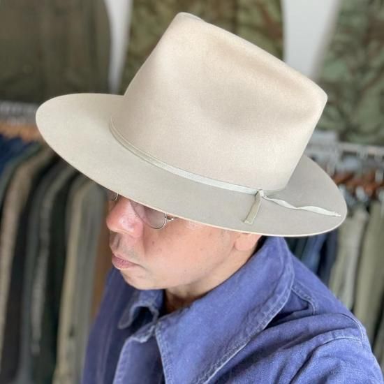 世界にコレ一つのワンアンドオンリーな逸品!これほど存在感抜群なディテールを有したデッドストックコンディションの個体は早々出会えないスペシャルなハットです!画像でも伝わる程の圧倒的キメの細かい素晴らしい素材感は必見!ステットソン好きには堪らない超レアアイテム。59CMオーバーの大きめサイズをお探しの方はどうぞお早めに!