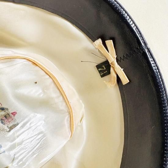 サイズタグが7 1/4のCM表記無し黒タグ、レザースベリとライナーのロゴ刻印デザインがリーフタイプ&透明ポマードガード付き、レザースベリの素材や留め付け方法などから、約60年代~70年代初期頃の物と推測できます。