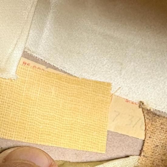 状態はサイズタグが7 3/8の7表記なしイエロータグ、ライナーとスベリのロゴ刻印内デザインが星でなくリーフタイプで、透明ポマードガードが付いたディテール&プロダクトシールデザインより、約50年代頃の物と推測できます。