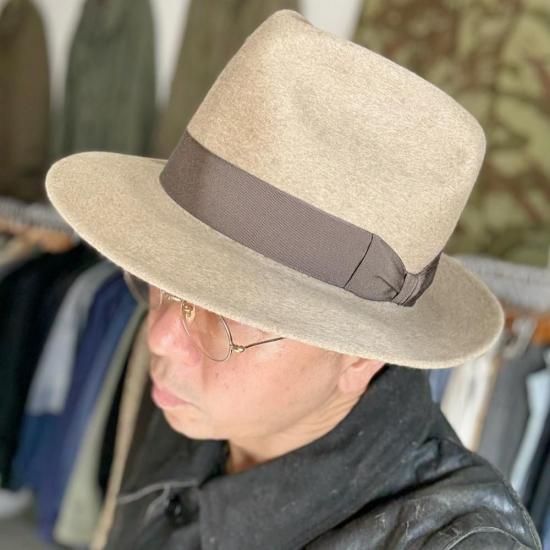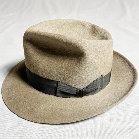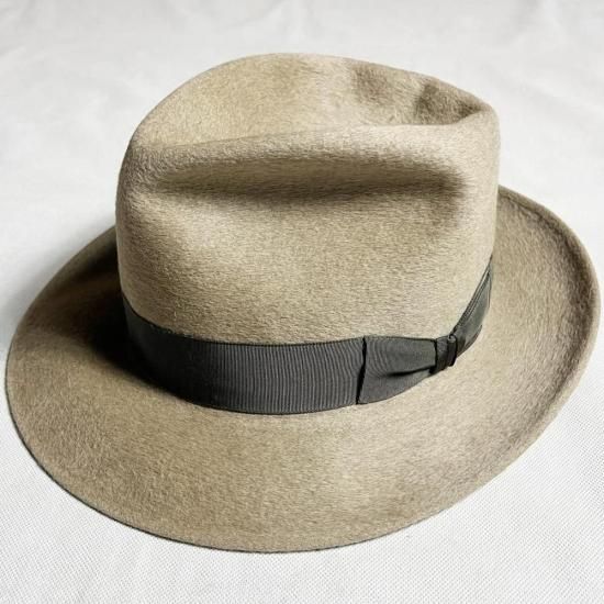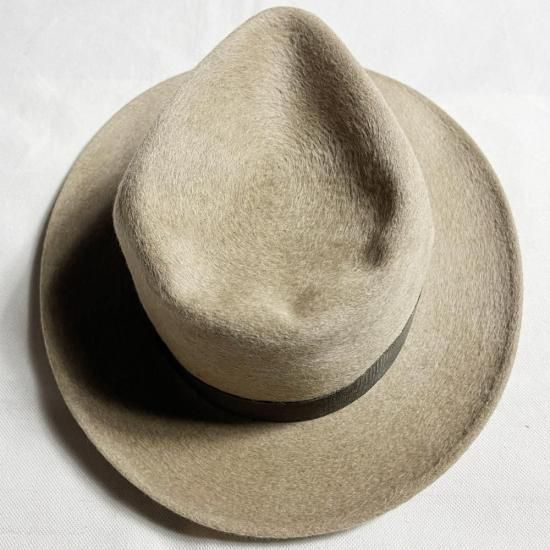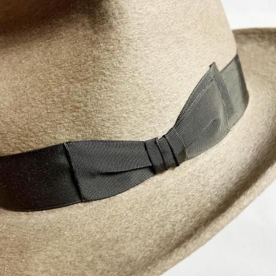 非常に目を惹く13CMのハイクラウンに、7CMの存在感のある超ワイドブリムタイプで、これぞヴィンテージの真骨頂と言える、荘厳な素晴らしいシルエットの個体です。
