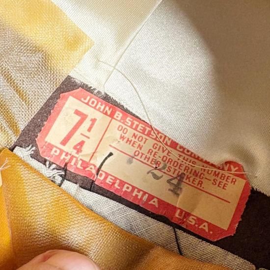 サイズタグが7 1/4 の7表記なしタイプのイエロータグ、レザースベリのロゴ刻印内が星ではなく、リーフのタイプ内側プロダクトシールのディテールより、約50年代初期頃の物と推測できます。