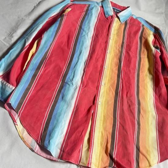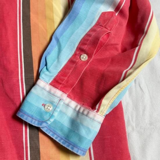 高価なシルク/リネン素材を採用した、グラデーションストライプが秀逸!POLO RALPH LAUREN(ポロラルフローレン)より、シルク/リネンブレイクストライプシャツが入荷。90年代〜2000年代初期頃の一品です。
