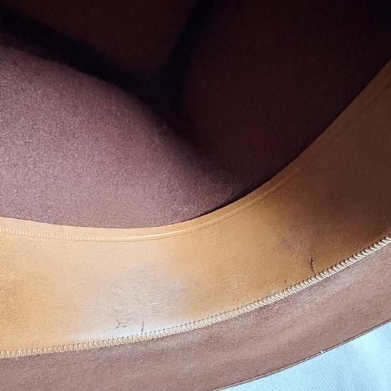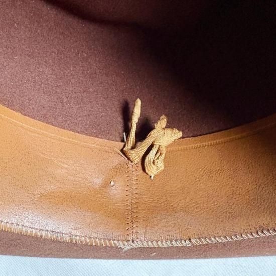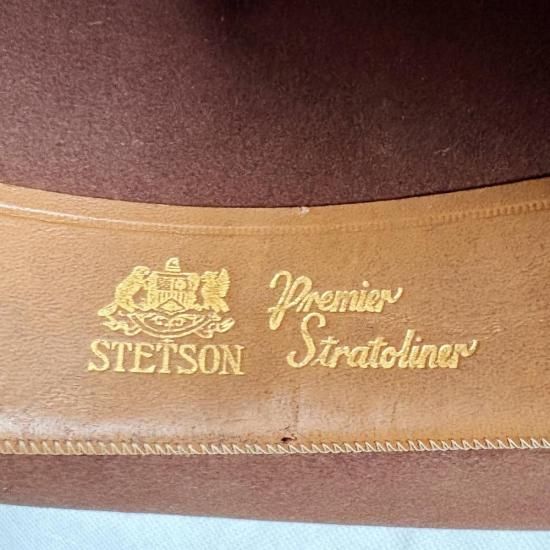 こちらは前途の通り、ライナーが付かないタイプで、天裏にSTETSON PERMIERのスタンプがしっかりと残っています。またレザースベリにもPREMIER STRATOLINERの刻印が確認できます。