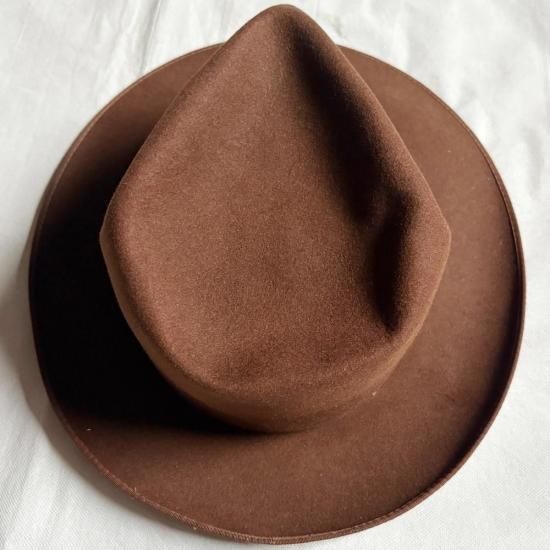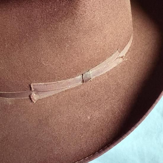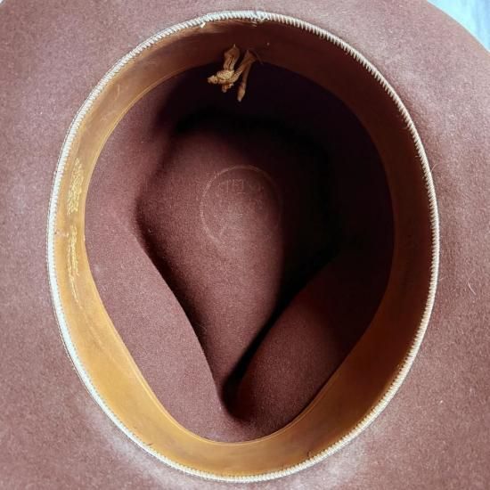 適度な張りと硬さの残った、大変良質なビーバーファーフェルトで、非常に高めのハイクラウンに、7CMの超ワイドなブリムというバランス完璧なデザイン。ストラトライナーで7CMオーバーのブリムの個体には殆どお目にかかれないレアアイテム!