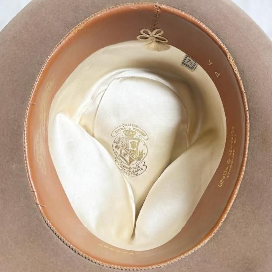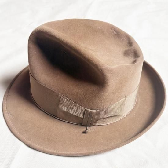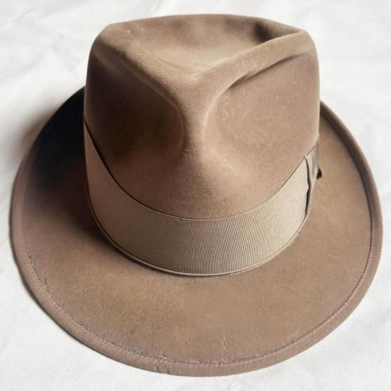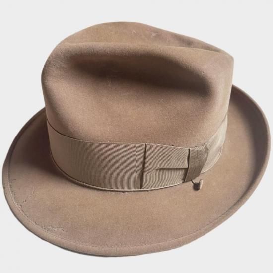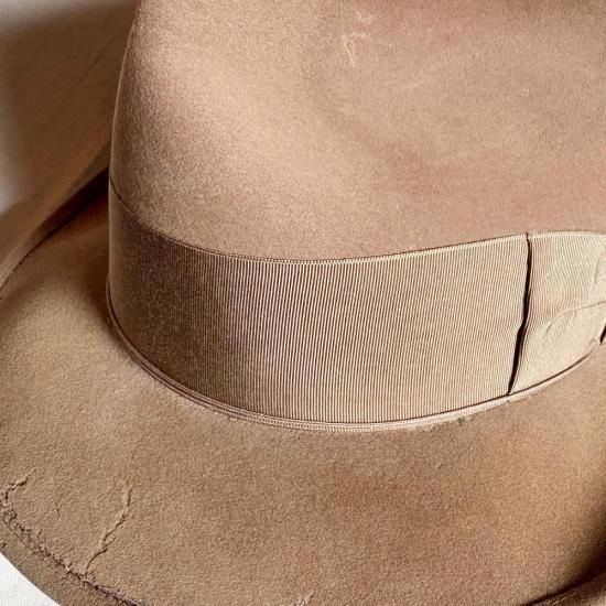 状態はブリムやクラウンにうっすらとしたシミや小さな虫食い跡が点在しております。レザースベリ留め付けステッチに若干の解れがありますが、着用に際して目立つ様なダメージもなく、まだまだ着用可能なグッドコンディションです。