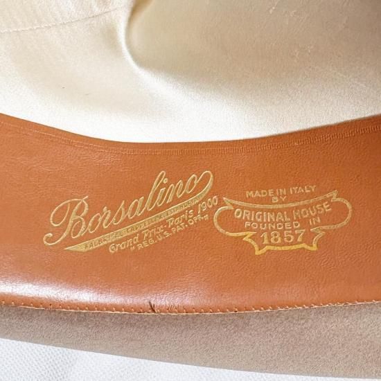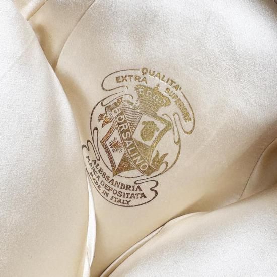ボルサリーノの中でも余り目にする事の少ない、クリーム系のモカブラウンボディに、ボディと同色の太幅リボンが光ります。そしてウインドキャッチャーボタンコードもしっかりと付属。